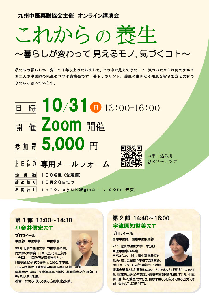 オンライン講演会「これからの養生」のお申し込みは、以下のフォームをご利用ください。